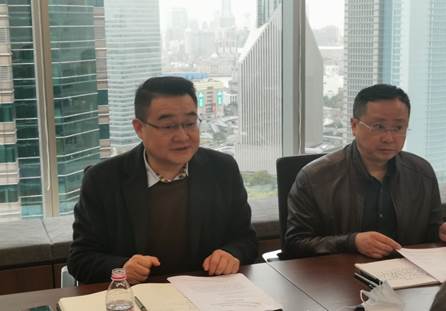 在上海亚信实业集团,与亚信集团董事长刘斐、总经理迟宁就乡村振兴、产业发展、粮油贸易、冷链物流等业务进行合作交流和洽谈。